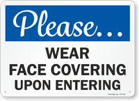 Use this professional quality sign and ensure people cover their faces as they enter.