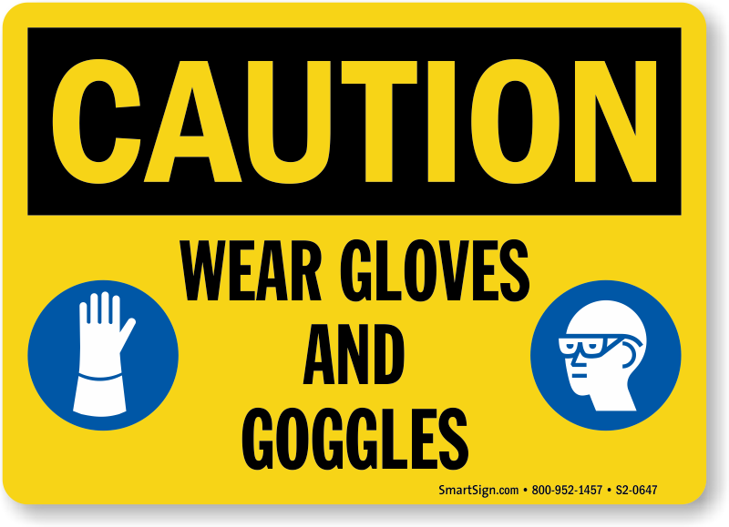OSHA Caution Sign: Wear Gloves And Goggles (With PPE Symbols)