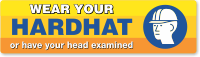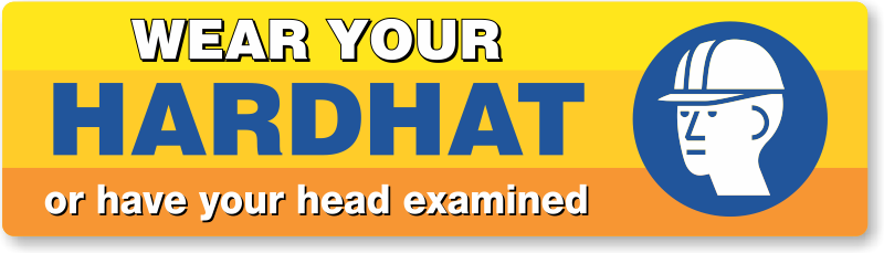Explain what can be the result of not wearing the head protection. Use this bumper sticker and tell everyone to wear their hard hat where recommended or they can end up in a hospital.