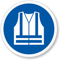 Use this ISO Mandatory Safety Label remind workers to wear a high visibility vest.