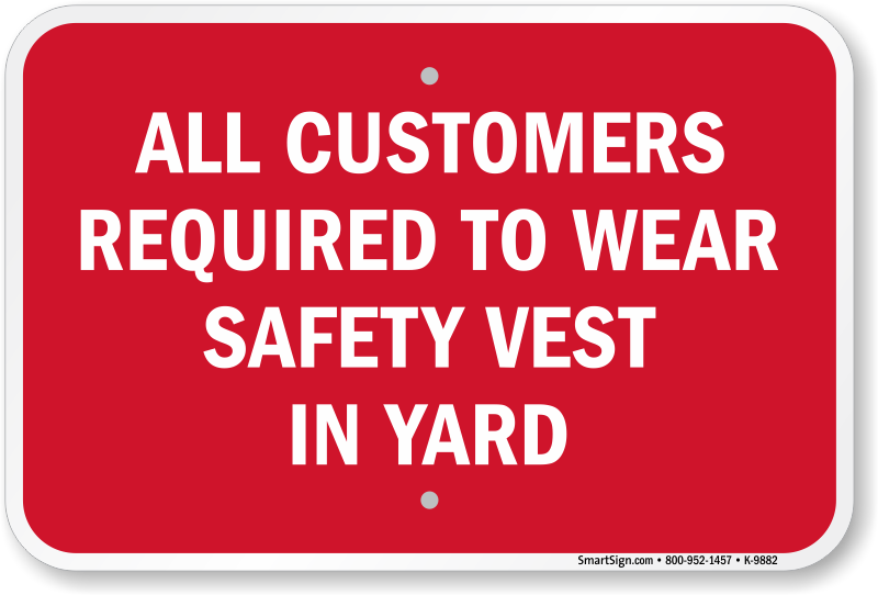 PPE Sign: All Customers Required to Wear Safety Vest in Yard K-9882 Learn More...