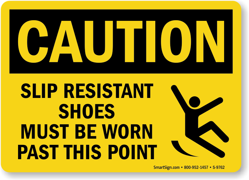 Give safety a hand with a sign. Use a 'Slip Resistant Shoes Must Be Worn Past This Point' sign to prevent slip and fall accidents.