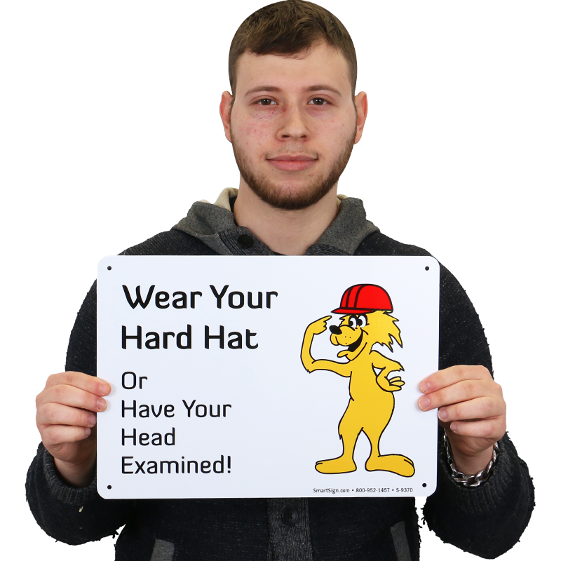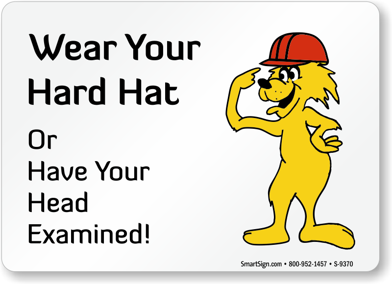 Tell workers and visitors to wear hard hats in a humorous tone. This 'Wear Your Hard Hat' sign is fun.