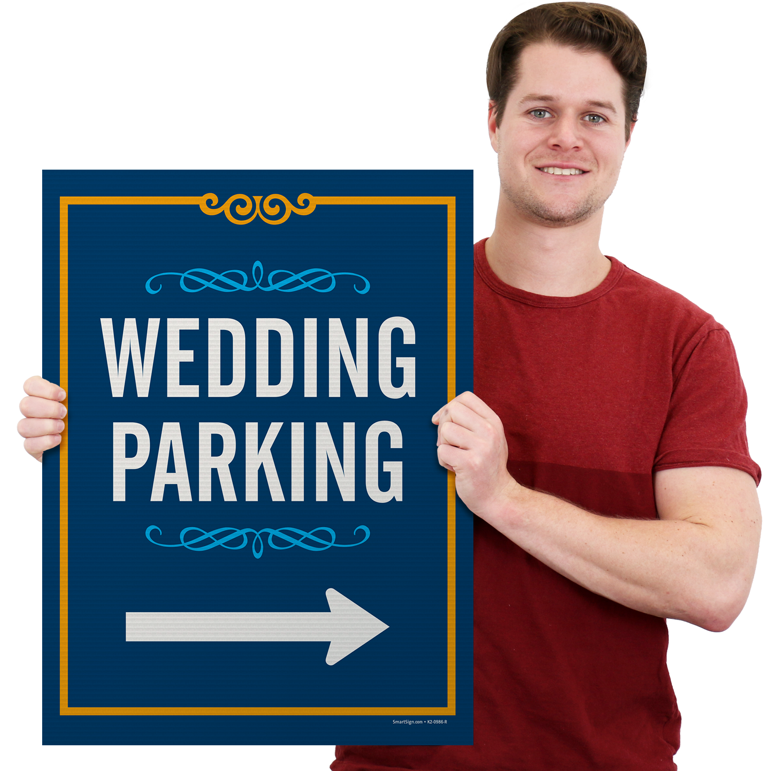 Inform wedding guests about allotted parking space for them with this portable double-sided A-frame sidewalk sign kit.