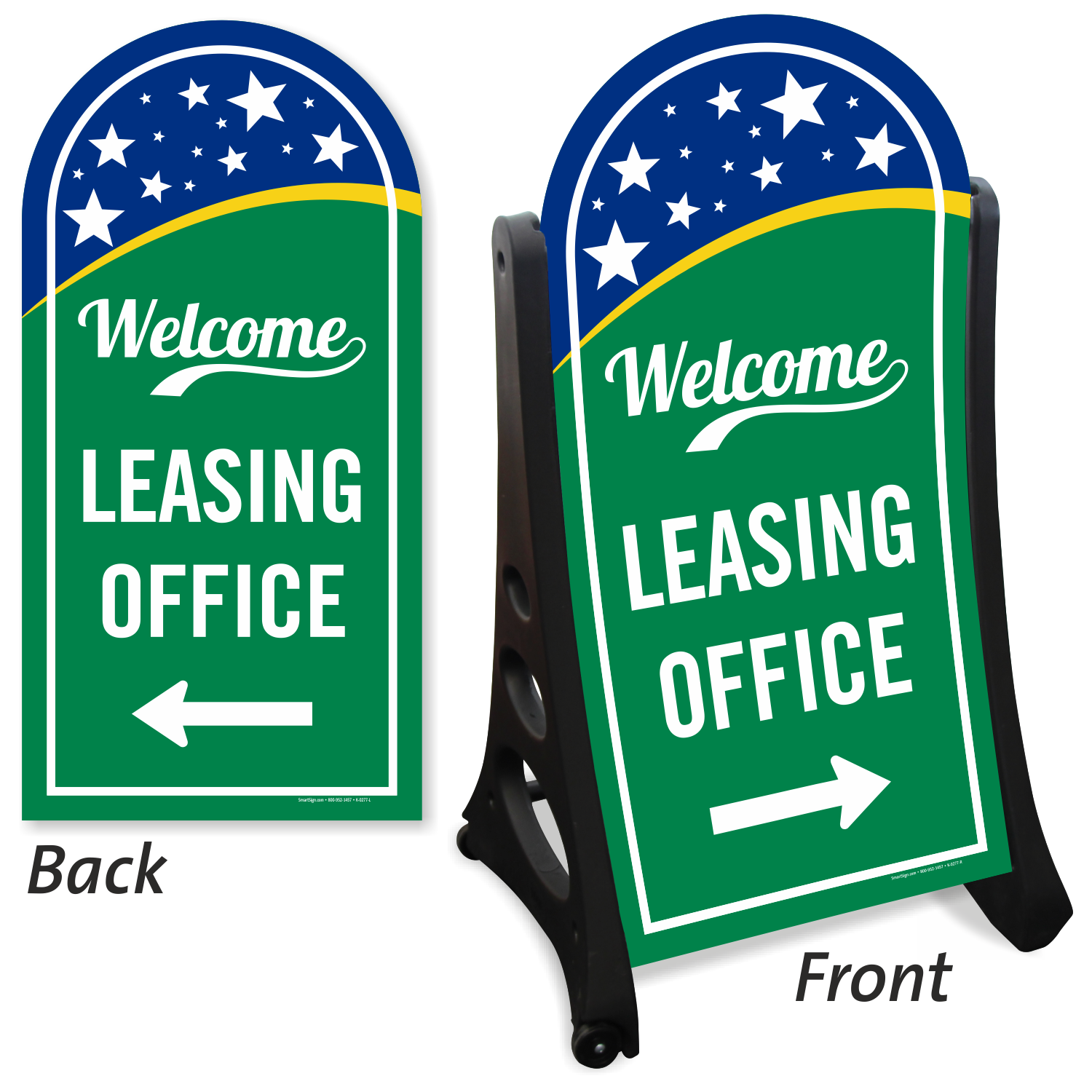 Guide patrons and visitors to the direction of your leasing office by installing our directional Welcome Sign with rounded top.