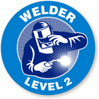Let everyone easily identify Level 2 Welder in your facility. Self-adhesive, circular hard hat decal with a comprehensible graphic in the center grabs attention even from afar.