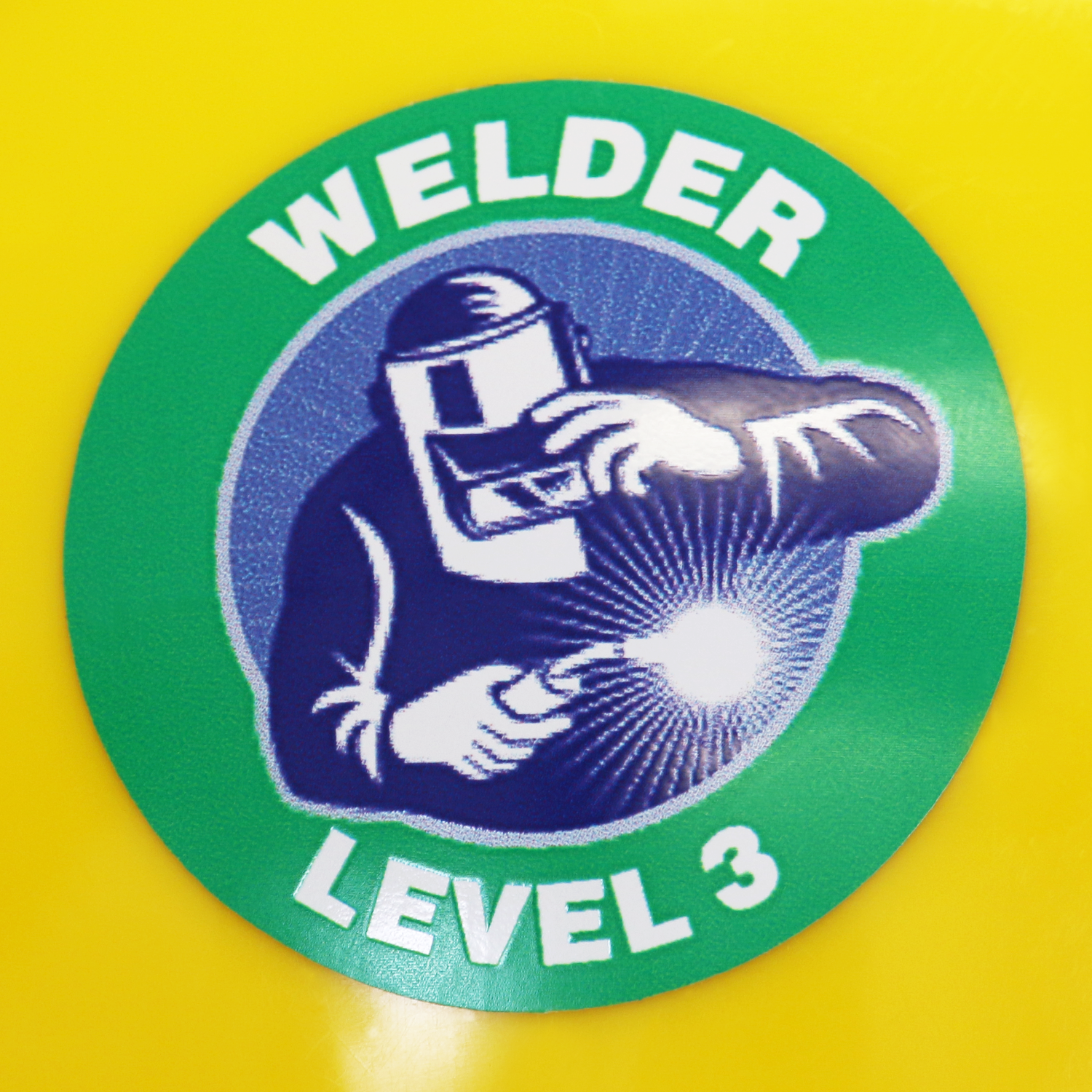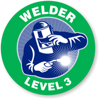 Let everyone easily identify Level 3 Welder in your facility. Self-adhesive, circular hard hat decal with a comprehensible graphic in the center grabs attention even from afar.