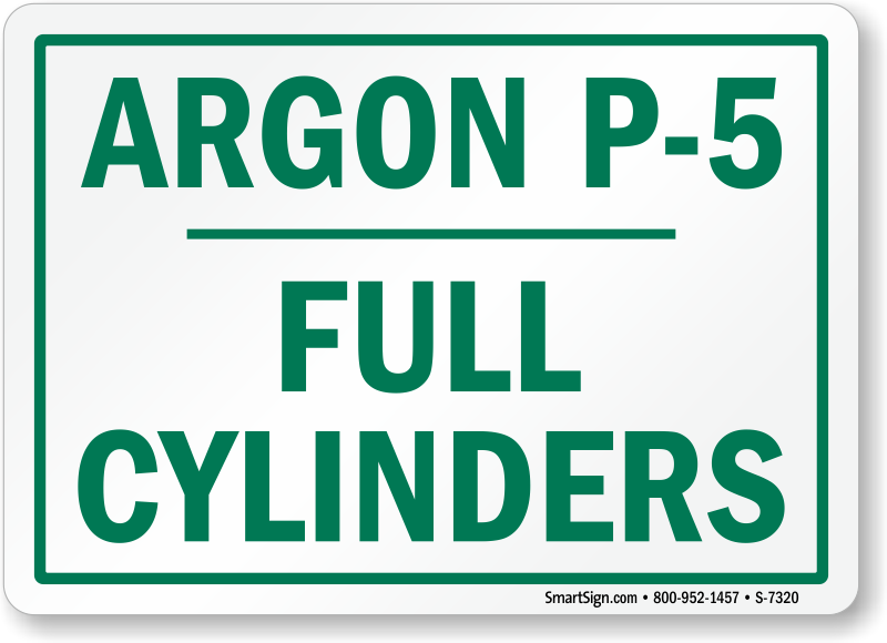 Whenever chemicals are being used they should be labeled. Place this Argon P-5 sign to let everyone know which chemical is in your cylinders.