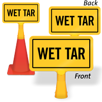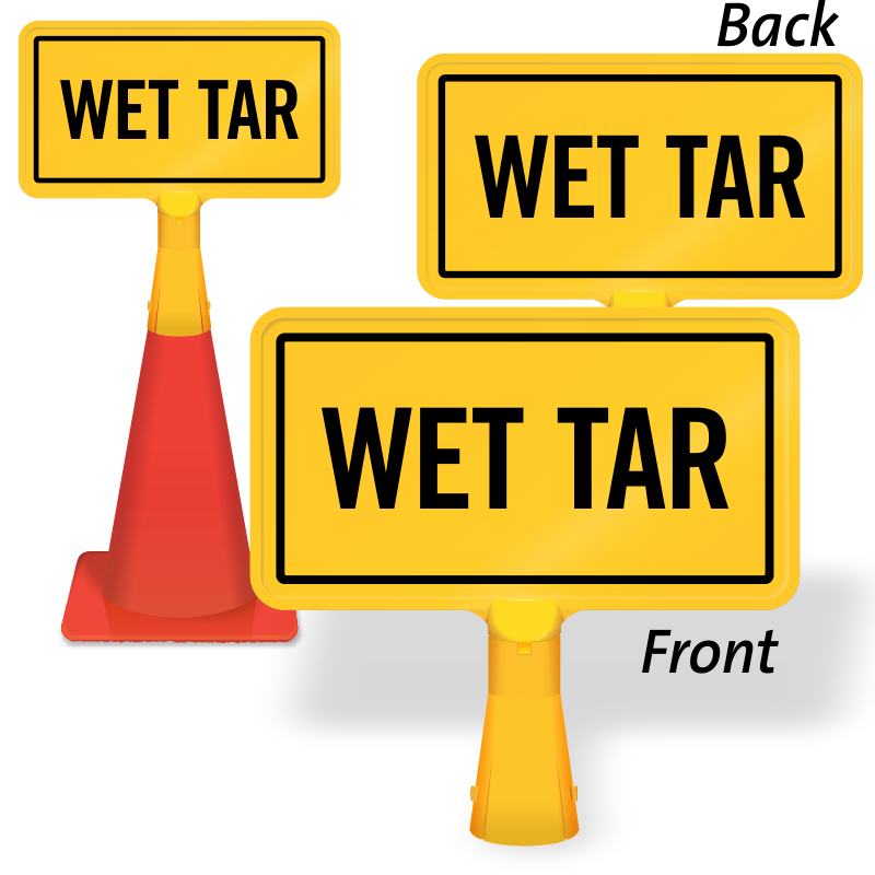 Warn motorists about wet tar on the road with this highly visible no-tip, portable Traffic Cone Sign.
