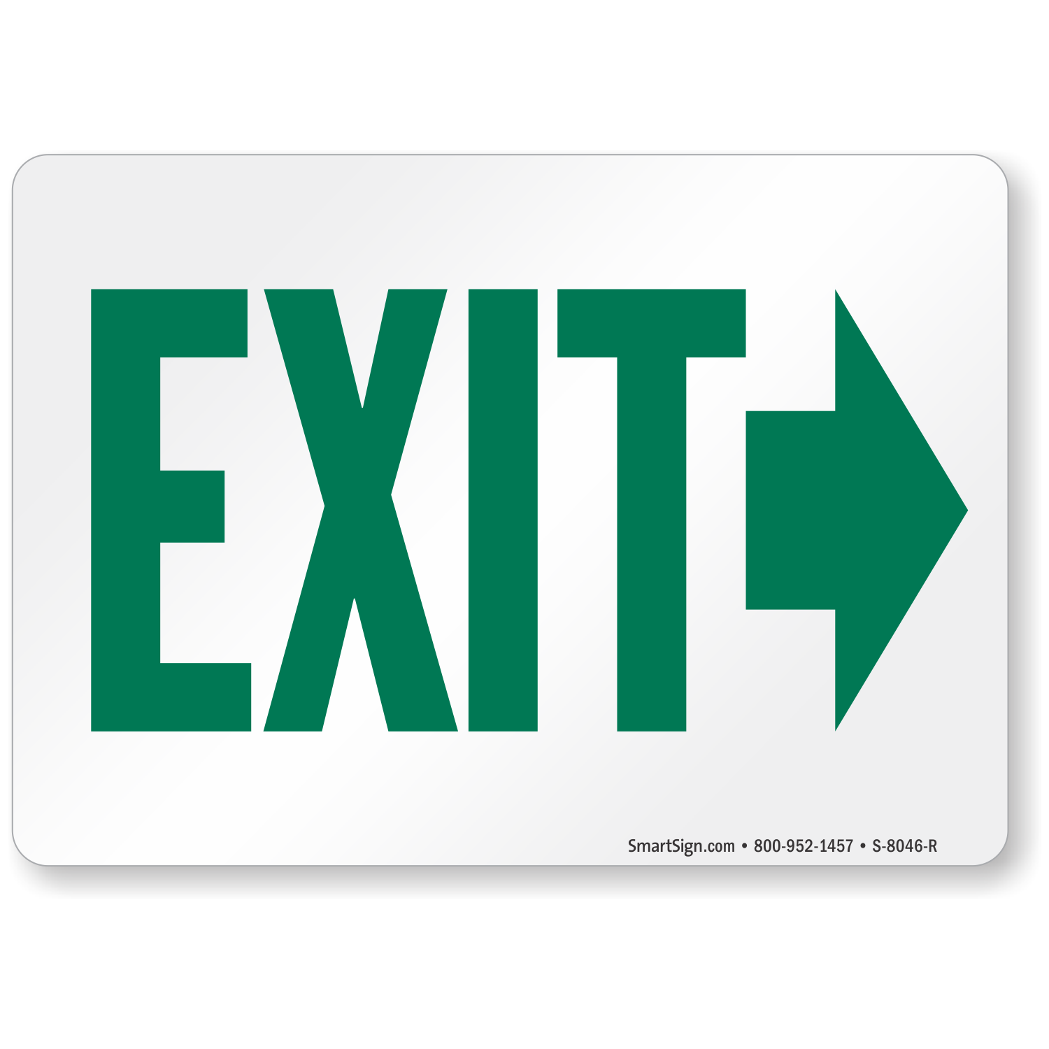 Avoid confusion inside your facility and mark all the exit doors clearly. This sign with a right arrow is a great way to direct people towards exit.