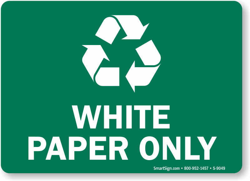 White paper is a recycling commodity--use this sign to help ensure it does not get recycled with other types of paper products.