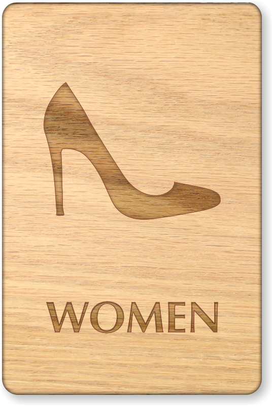 Looking for a unconventional bathroom sign? Mark women's bathroom with this wooden restroom sign (with heels symbol).