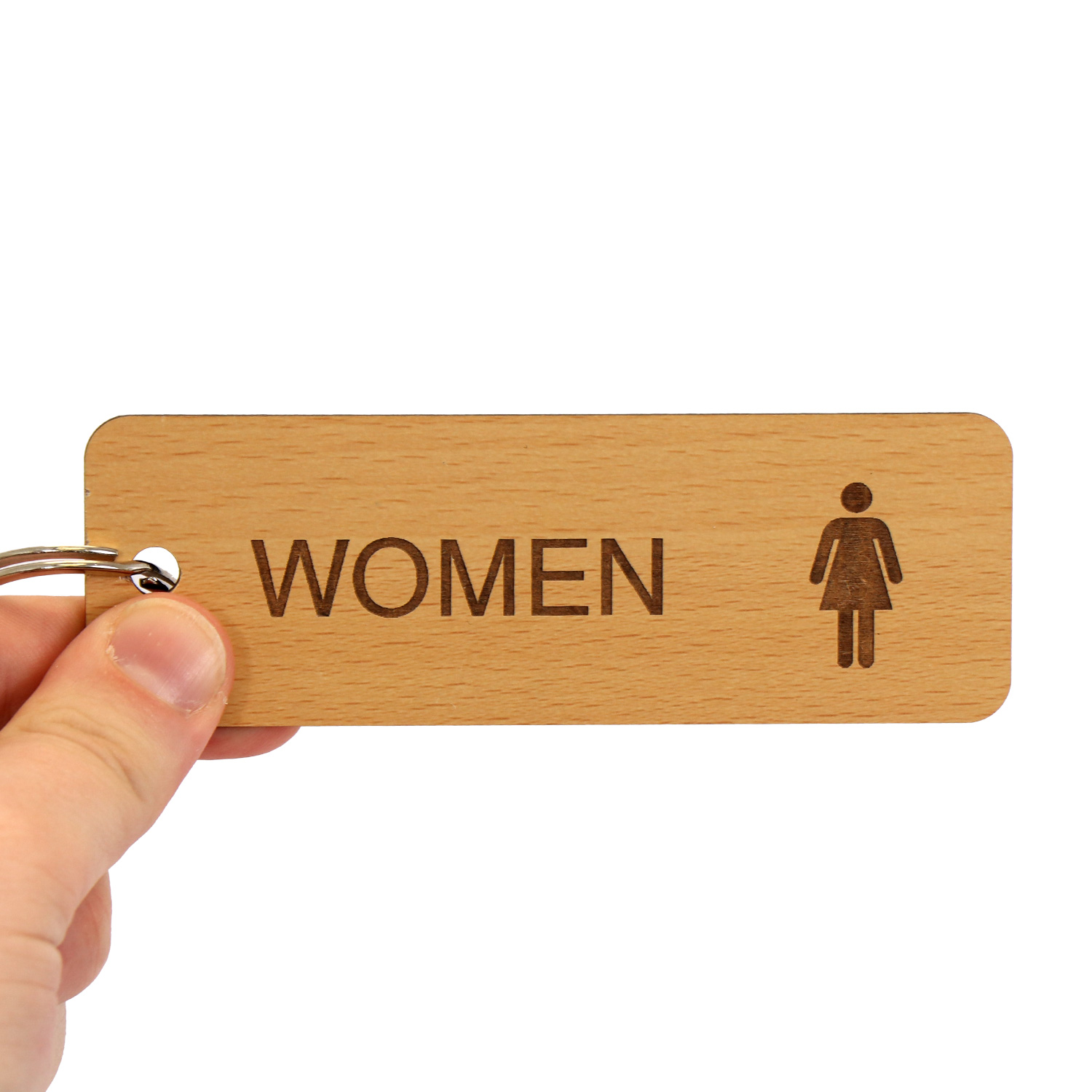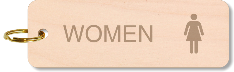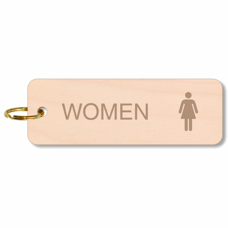 This 5 in. X 1 11/16 in. female symbol restroom key tag will keep your women's restroom keys well in place. Premium wooden finished keychain is ideal for plush hotels and other facilities.
