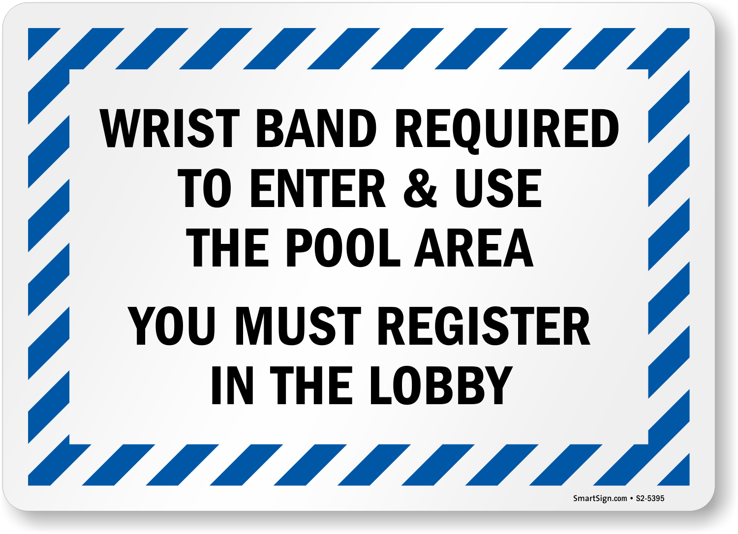 Pool Safety Sign: Wrist Band Required To Enter & Use The Pool Area,You Must Register In The Lobby S2-5395