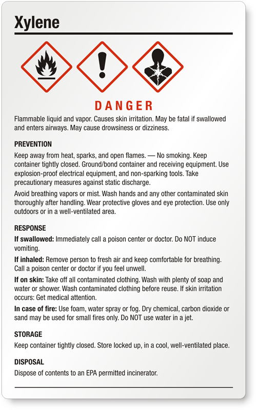- View more GHS Xylene labels here.