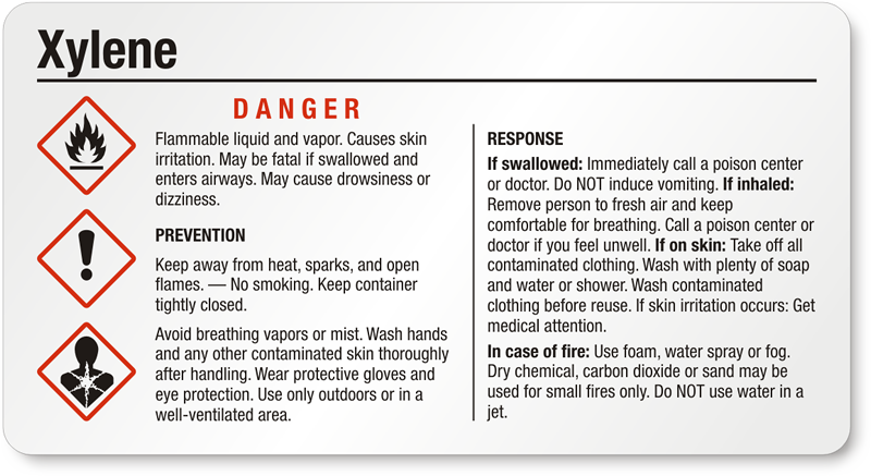 - View more GHS Xylene labels here.