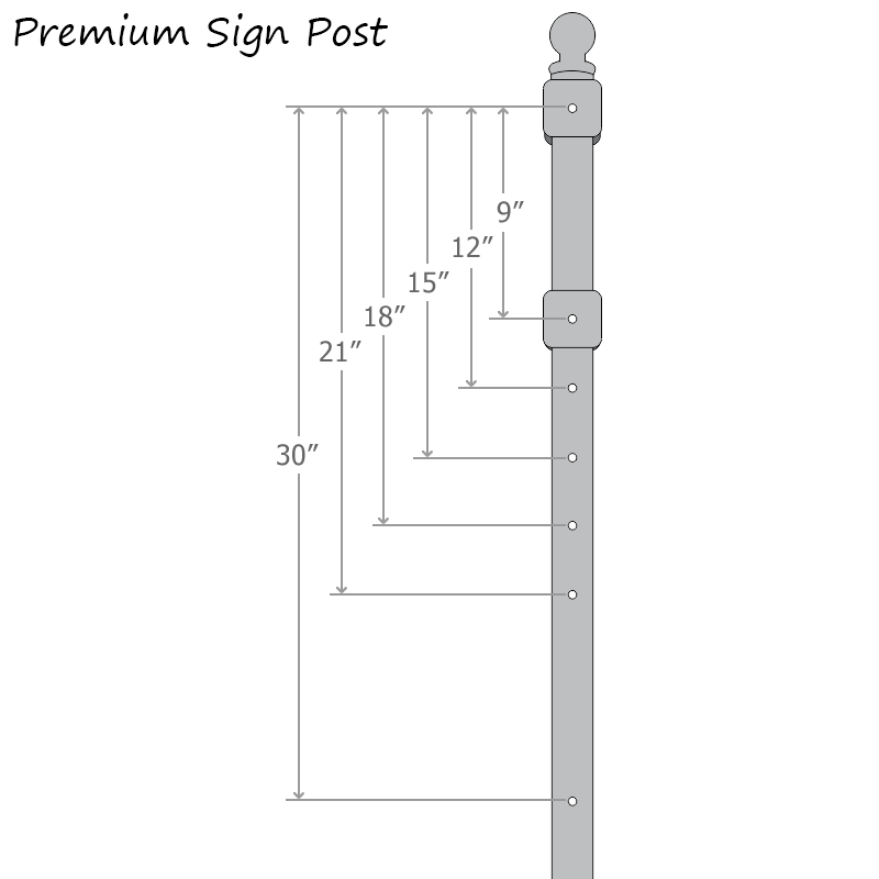 - Compatible with post mount signs ranging from 9" x 12" to 24" x 24" or custom shaped signs with 3" hole spacing. 12" x 36" signs can be mounted with the premium model only.