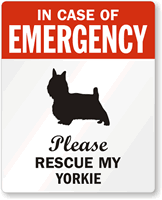Pet Rescue Stickers are proven to save pets' lives. A Yorkie Rescue Sticker lets rescue workers know what dogs to look for.