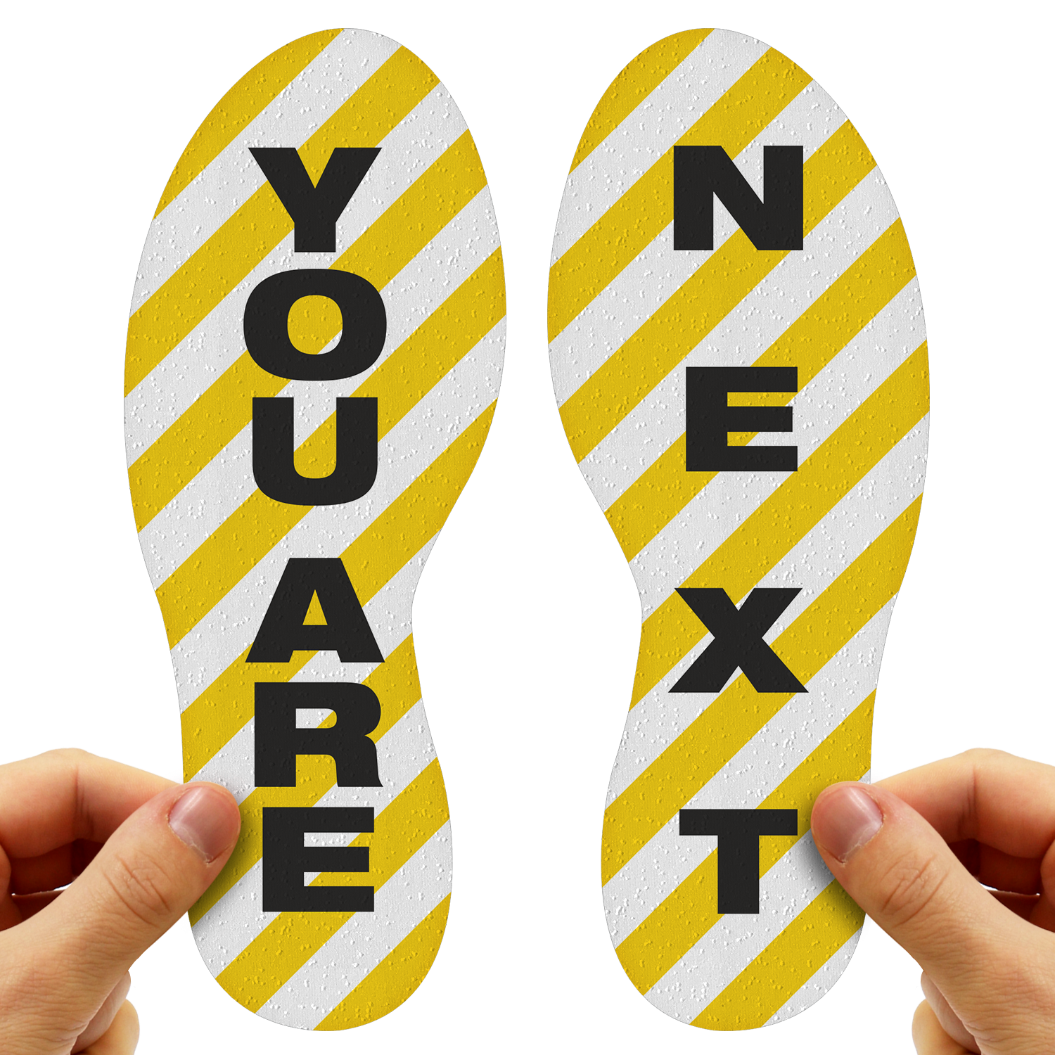 Tackle possible restlessness in people as they wait for their turn. Place these hard-to-miss floor markers that tell people the wait is almost over.