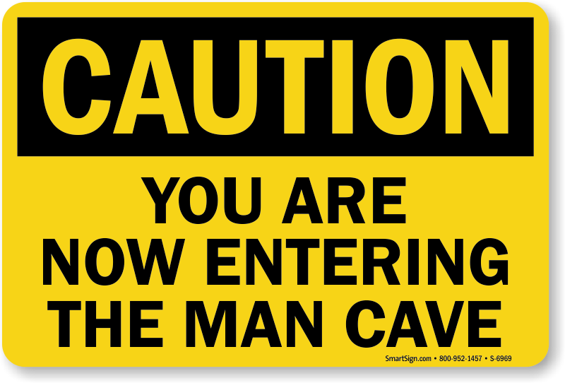 Create a personal space by posting this caution sign that gives a heads up to those heading the man cave.