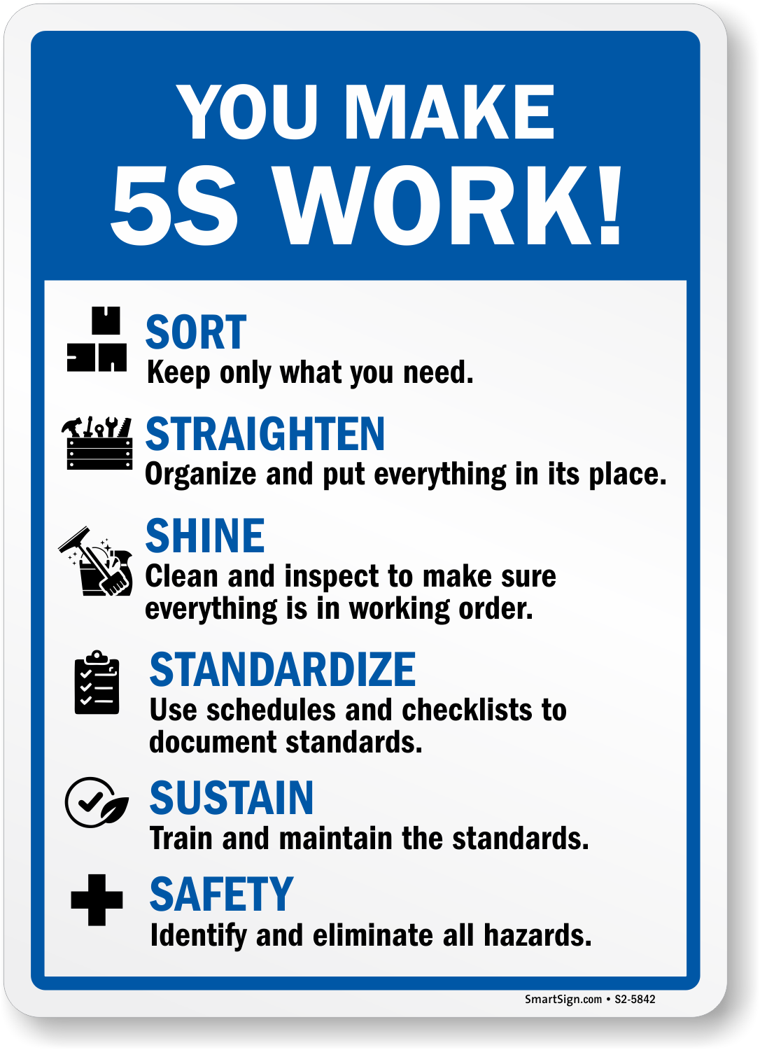 Drive workplace efficiency with a 5S Lean Workplace sign, promoting an organized and structured environment.