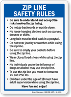 Zip line accidents can cause severe injuries. Ensure a safe environment at your campsite by informing campers about the zip line safety rules with this sign.