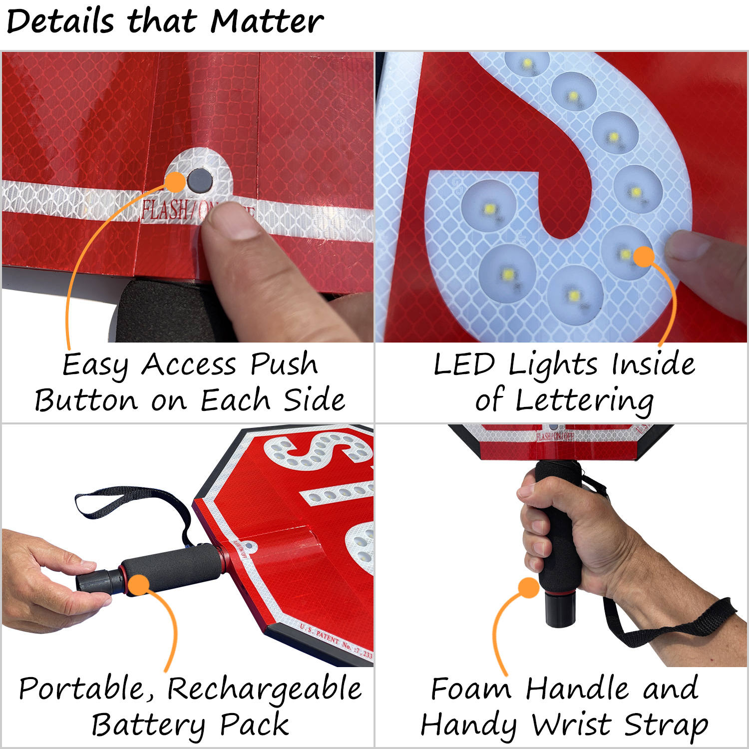 LED Stop Paddle : LED Stop-Sign with Rechargable... Part #:K-2195-LED 18" x 18" LED Stop Paddle w/ Rechargeable Battery & Charger Verified PurchaseLighted stop sign