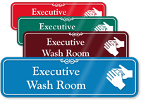 You should try our 20 mil thick and 32 mil thick DiamondPlate Aluminum Hand Washing Signs. The anodized aluminum plates feature graphics that are embedded into the pores of the aluminum. The 20 mil thick signs come with 3 mil thick, 3M adhesive (467MP) while the 32 milt thick signs come with 5 mil thick, 3M (468MP) adhesive that sticks permanently to any flat surface. Signs have up to 20 years of outdoor life and take temperatures up to 1000°F. DiamondPlate™ door signs withstand constant abuse and abrasion due to people touching the sign surface when opening or closing the door. These photo-sensitive anodized aluminum plates are great for door signs.
