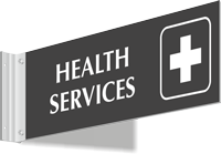 Use professional signs to mark Health Services in your facility. Universally recognized first aid symbol ensures there is no confusion in room identification.