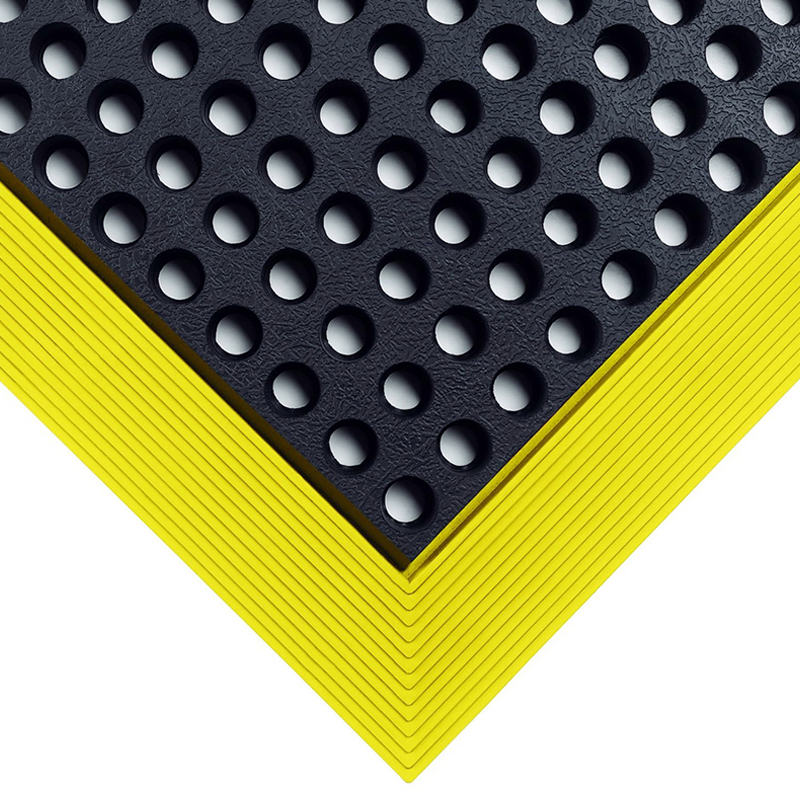 Combines wet area features with anti-fatigue benefits. 5/8", to provide protection and relief for workers. Secure their safety with a slip-resistant texture and molded-in safety borders.
