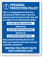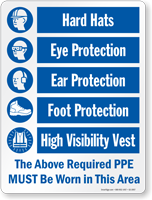 • • Some workplaces just need head protection while some others require head and ear protection both. You can easily choose specific PPE symbols you want on your signs. Customization is FREE!