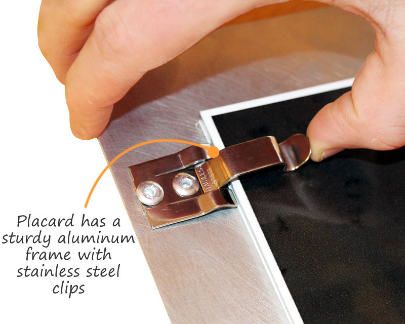 Quick change placard allows you to quickly change between Military Fire Division symbols. Just flip the aluminum “pages” over and then snap the proper display symbol into place.
