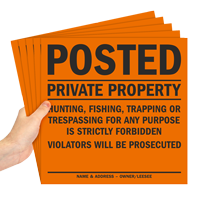 Of course, you can. Our easy-to-customize no hunting templates let you add your message to the sign, choose the font size and style, and select the mounting mode. You may also select the material you want for your no hunting sign. From adding particular rules to adding your name and address, you can personalize your sign just as you like to enforce the policies specific to your property.