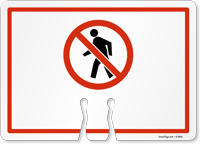 A no pedestrian traffic sign prohibits foot traffic in areas where walking creates safety hazards such as highways, bridges without sidewalks, tunnels, or high-speed roadways. These signs feature a walking person symbol inside a red circle with a diagonal line. Examples include the warning no pedestrian crossing sign and the pedestrian traffic sign. For design standards, refer to MUTCD Section 2B.