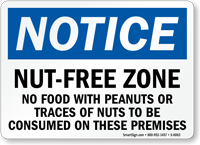 Our peanut allergy signs clearly communicate peanut-free zones, peanut allergy warnings, and food handling cautions for schools, cafeterias, restaurants, food processing facilities, and healthcare settings in stock and custom formats in rigid plastic, aluminum, adhesive vinyl, and magnetic materials.