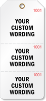 Each perforated tag has a unique and sequential number. This same number is also stamped onto the perforated stub of each tag. After writing, you can then tear off the perforated bottom part of these tags and then use the bottom stub portion for your records.