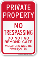 • • Click here to browse through our wider collection of no trespassing signs.