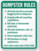 Your garbage will never really be clean, but post dumpster rules to keep things in order. Choose from aluminum or a range of reflective grades.