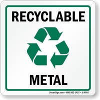 • • Made from recycled aluminum, scrap metal signs are also laminated to withstand extra abuse and to extend outdoor life. Signs are suitable for inside-the-plant applications too.