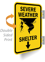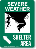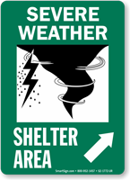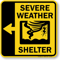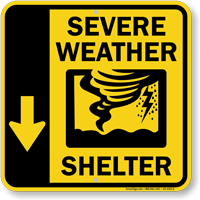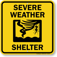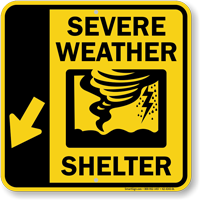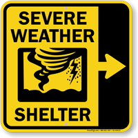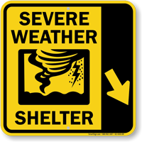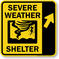 Severe Weather Signs are important in that they communicate and direct everyone to tornado shelters, evacuation routes, rescue areas, or other safe areas. Install these signs and be prepared for emergencies like tornadoes, hurricanes, thunderstorms, and other severe weather. Signs are the most affordable way to ensure safety of employees during severe weather.