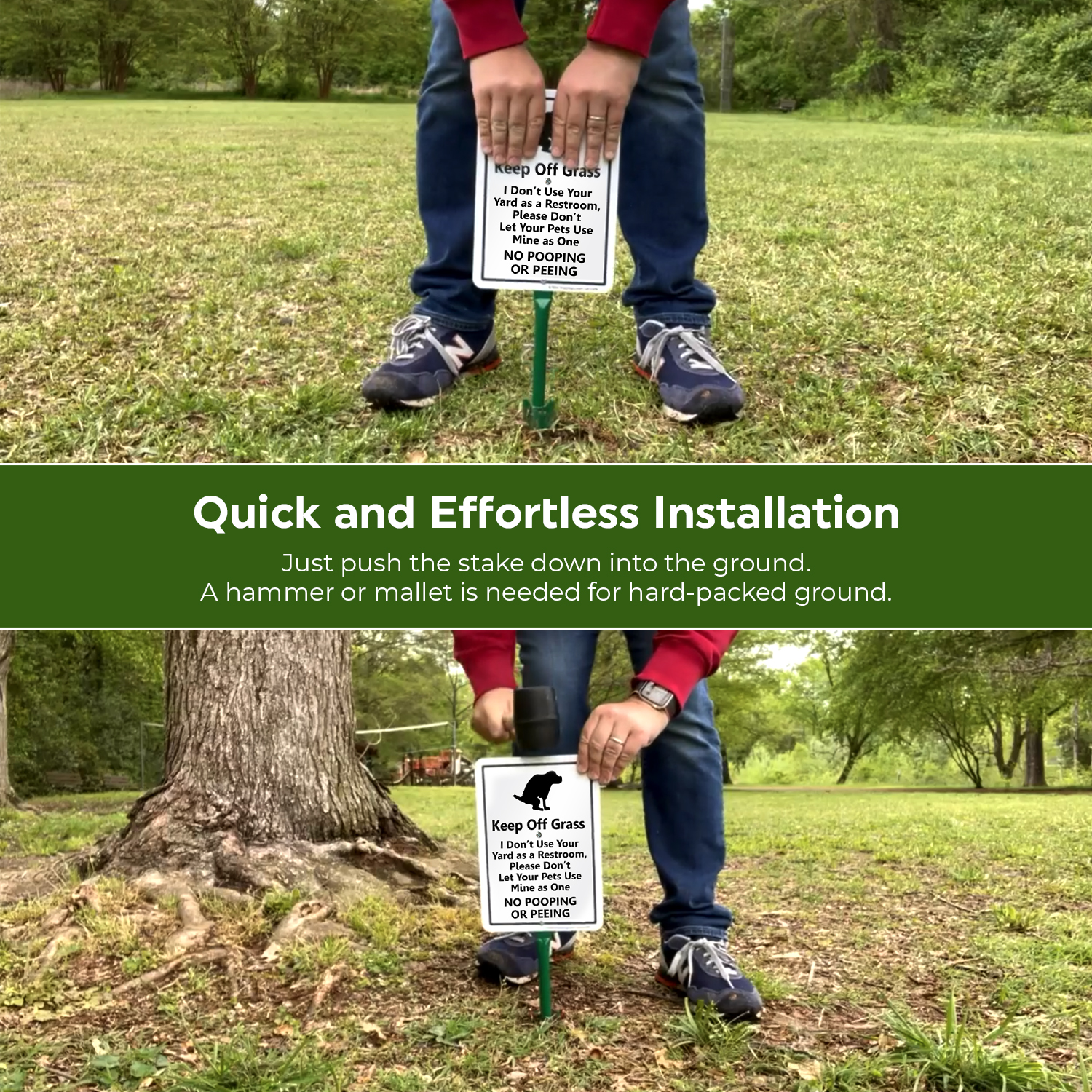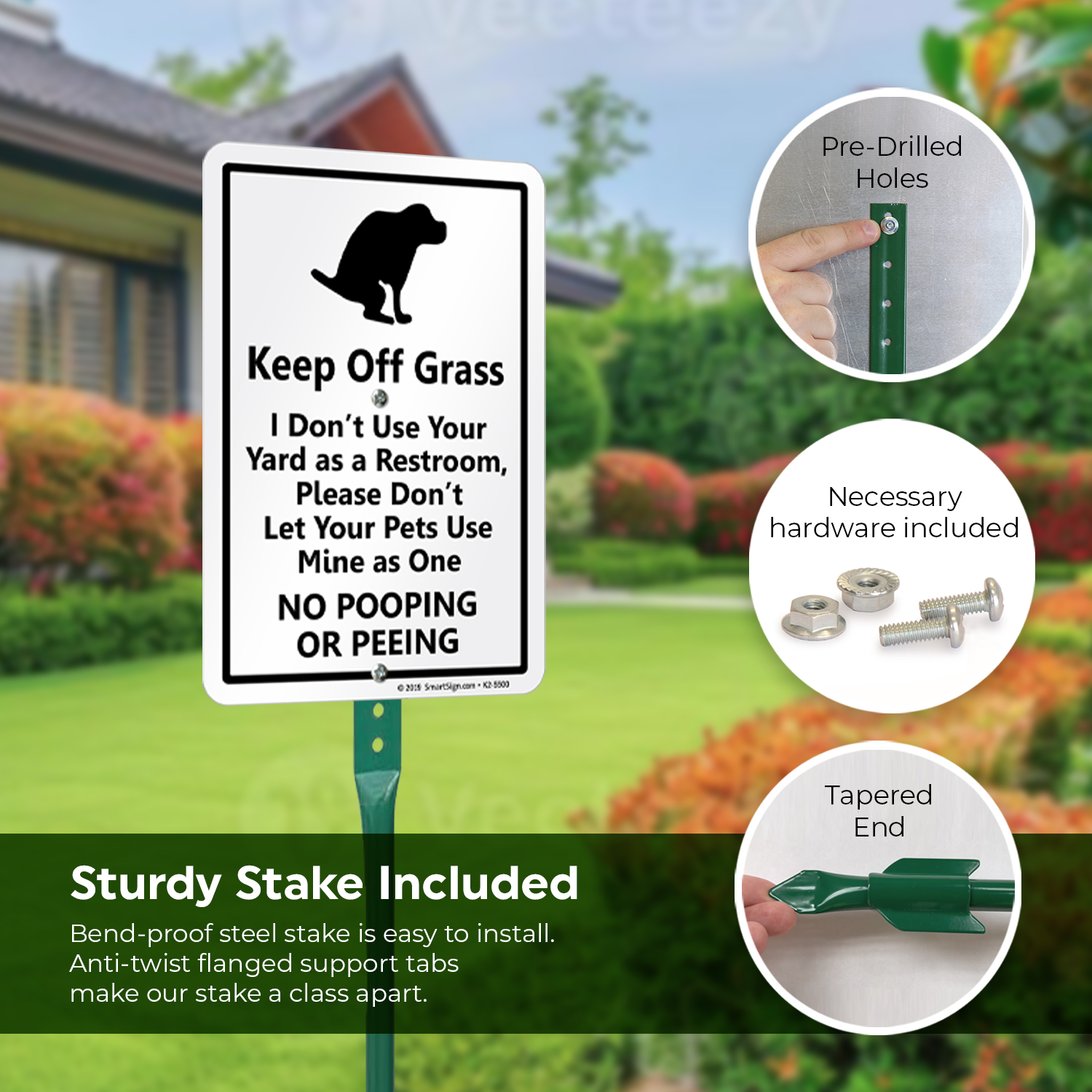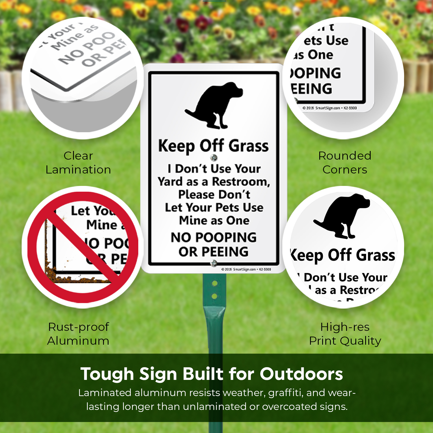 Post a polite reminder to keep pets away from your lawn. Sign prohibits owners from letting their pets do their business on your property.
