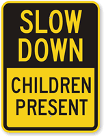 Remind everyone to be cautious near playgrounds, school zones, or wherever children are present. Slow down for children signs are bright for great visibility, and alert drivers to be careful on the roads.