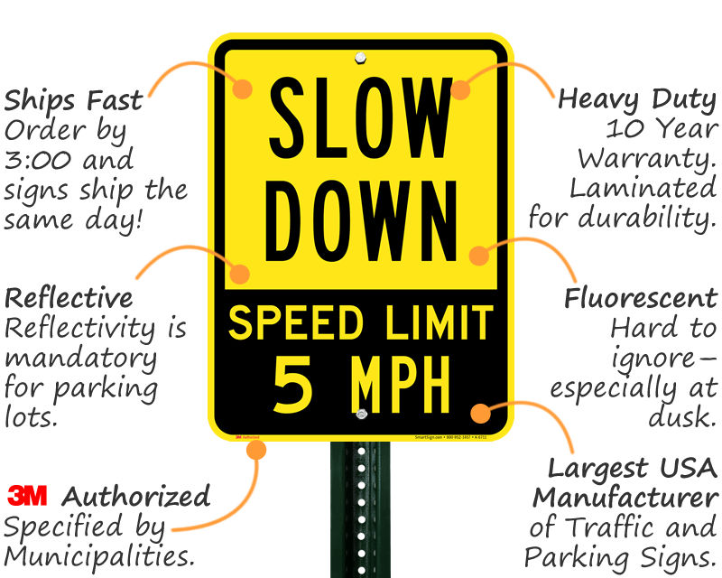 Easier to add than a speed bump, use a caution slow down sign to maximize safety. Bright, bold messages are particularly useful around schools, tight curves, or other sensitive areas to help prevent accidents.