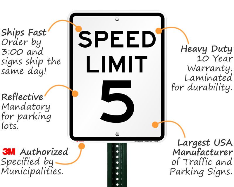 Prevent accidents with our speed limit signs, the same we supply to government customers, which meet DOT and MUTCD standards. Messages start from as low as 5 mph.