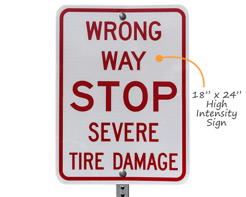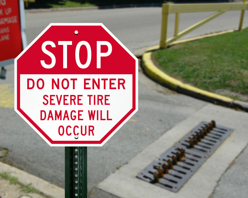 Don't back up! It won't be pretty. Post a few tire damage and road spike signs to warn your drivers. Keep your property secure and protect drivers, too.
