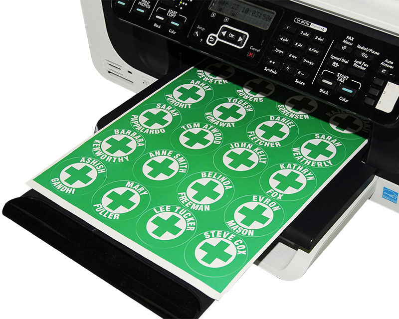 • The PDF seamlessly aligns with our blank laser printable stationery for hard hat stickers. Load the blank sheet of labels into your laser or inkjet printer and get it printed with your downloaded custom PDF in no time.