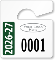 This depends on your needs. Parking stickers (decals) are ideal for year-long, single-vehicle use. Mirror hang tags are easily transferable between vehicles. We offer both custom and in-stock student parking passes to fit any school's policy.